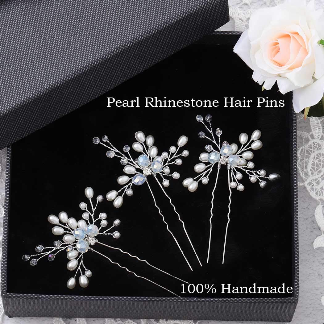 - Original Categories – Bride Pearl Wedding Hairpin Rhinestones Bridal Hair Pins Sparkly Crystal Hair Clips Jewelry for Women and Girls (Pack of 2) (Silver) by Barode