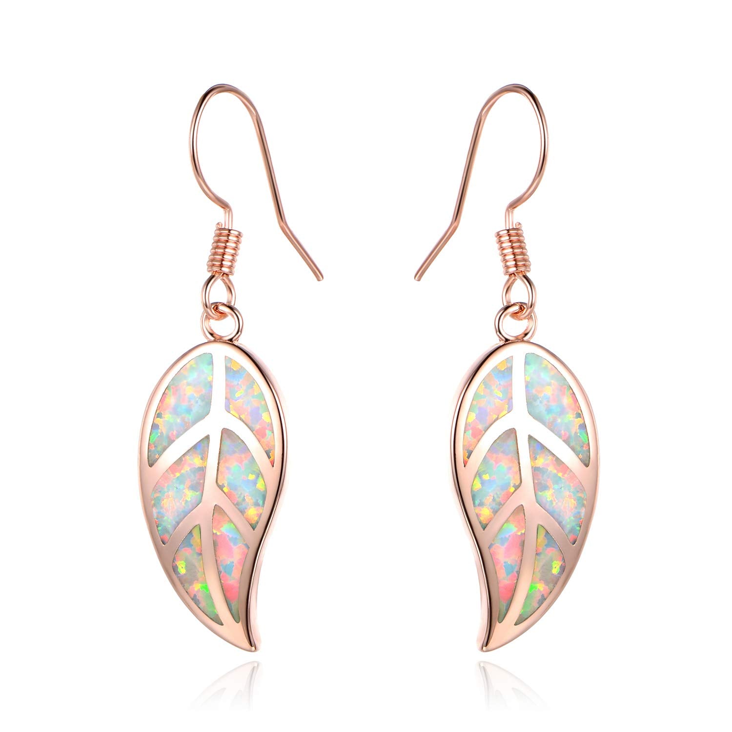 - Original Drop & Dangle – 18K Rose Gold Plated Created White Opal Leaf Drop Earrings (Rose Gold) by Barzel