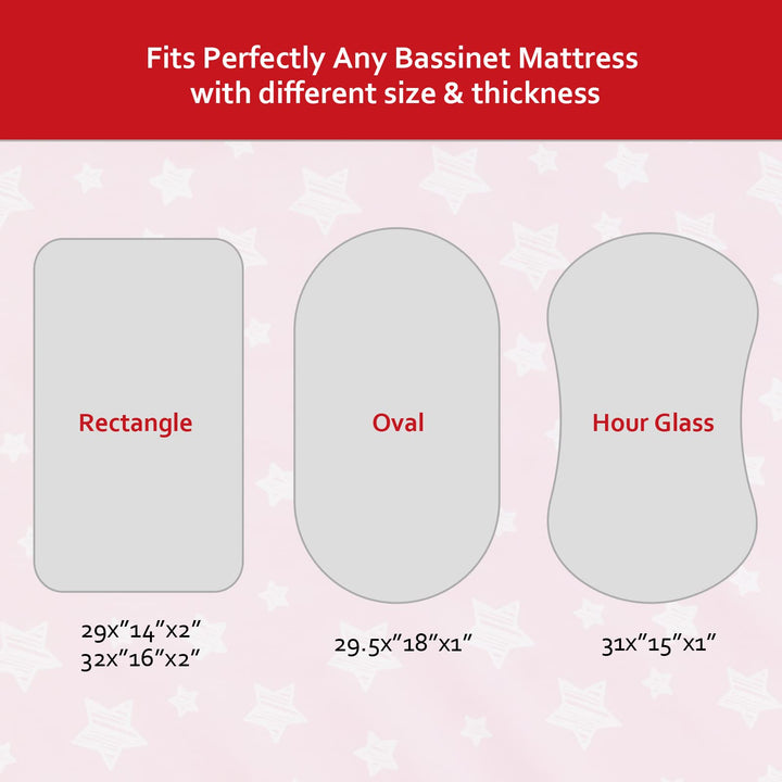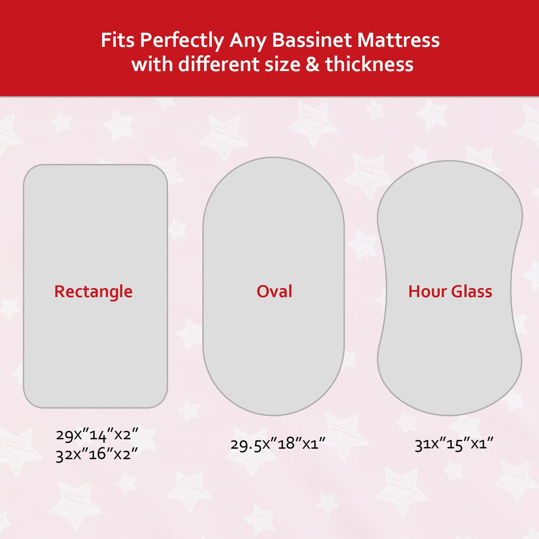 - Flexible Fit: Measuring 33 X 17 Our bassinet sheets fit almost all standard oval, round, rectangle, hourglass shaped bassinet mattress. Each sheet comes with an elastic band encased at the bottom for safety.