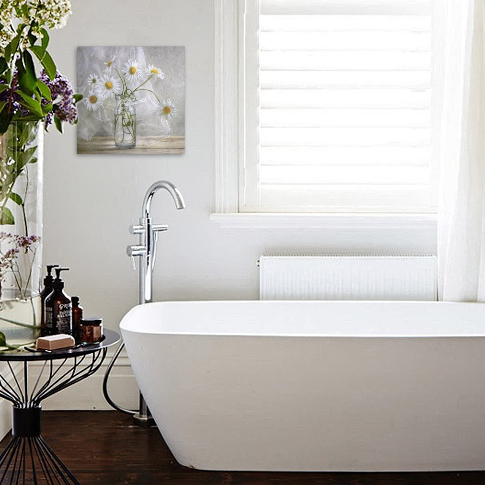- Original Posters & Prints – Bathroom Wall Decor Canvas White Flower Modern Wall Art for Living Room Large Size Painting Picture Artwork Wood Framed Wall Art Easy to Hang Size 20 X 20 in by Wuhu Qifei