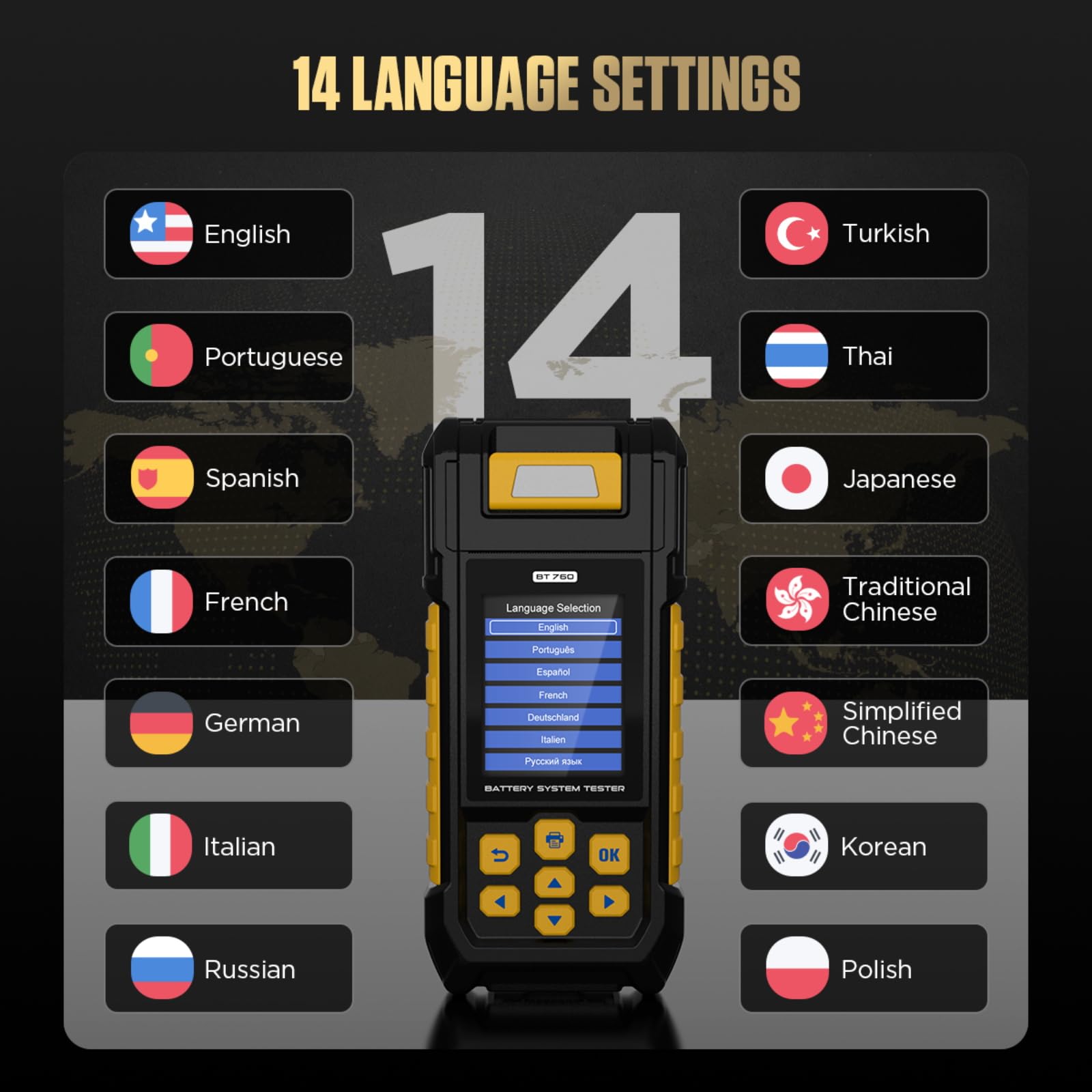 - 🆕MULTI-LANGUAGE SUPPORT 14 Languages are available. Available in English, Portuguese, Turkish, German, French, Russian, Chinese, Traditional Chinese, Spanish, Korean, Japanese, Polish, Italian and Thai.