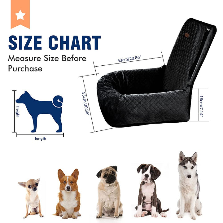 - Dog seat size: 20.86 inches (length) x 20.86 inches (width) x 7.5 inches (height), can easily accommodate small and medium-sized dogs and cats under 35 pounds (such as bulldogs, labrador dogs, York dogs, etc.) . Suitable for almost all types of vehicles, cars, trucks, SUVS, cars