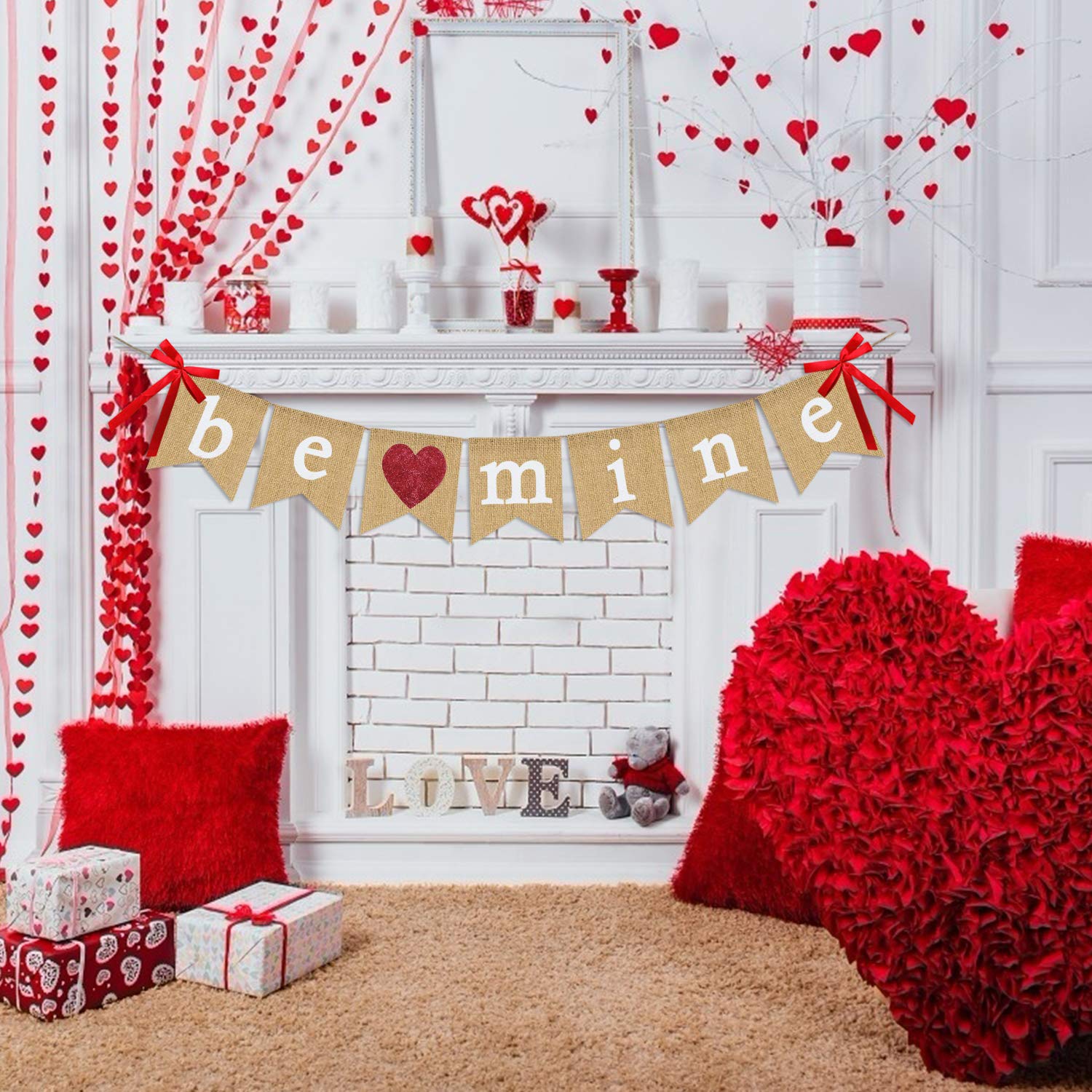- UNIQUE DESIGN - We have put the joy of the sweet feeling into this gorgeous Be Mine banner. The glitter red heart was glued on the rustic burlap flag and the banner was decorated with bow-nots, which will makes your party more prominent and special and more easy to attracted other's eye.