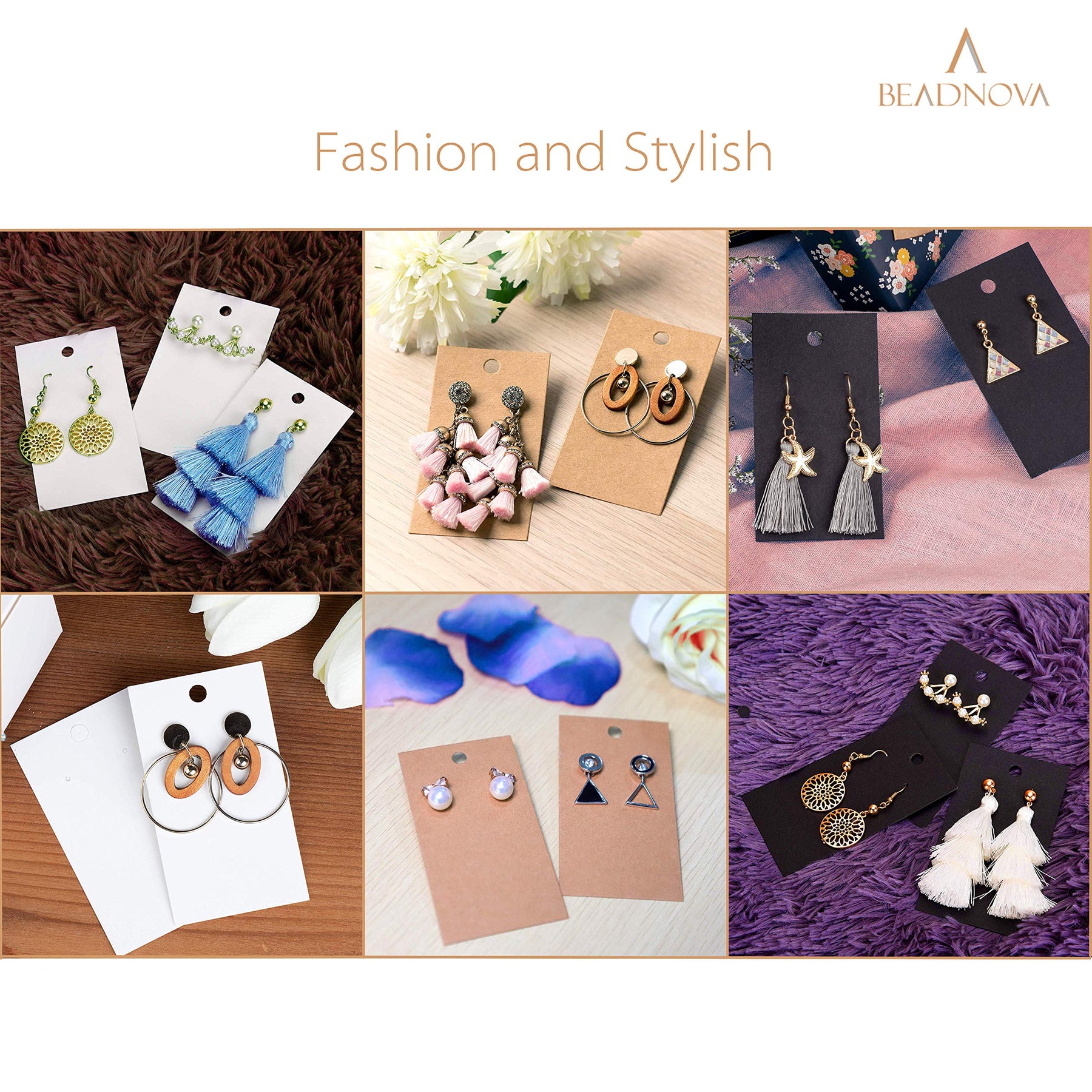 - Wide application: BEADNOVA earring cards are designed without any pattern. Both sides are matt in finish, which you can easily stamp your logo and hand lettered your information. Perfect to use as display card if you do your own jewelry makings. They are nice and neat to store your jewelry at home. If you buy a set of different earrings and want to break them down to put on their own card and give them as gifts, our ear studs card works well too.