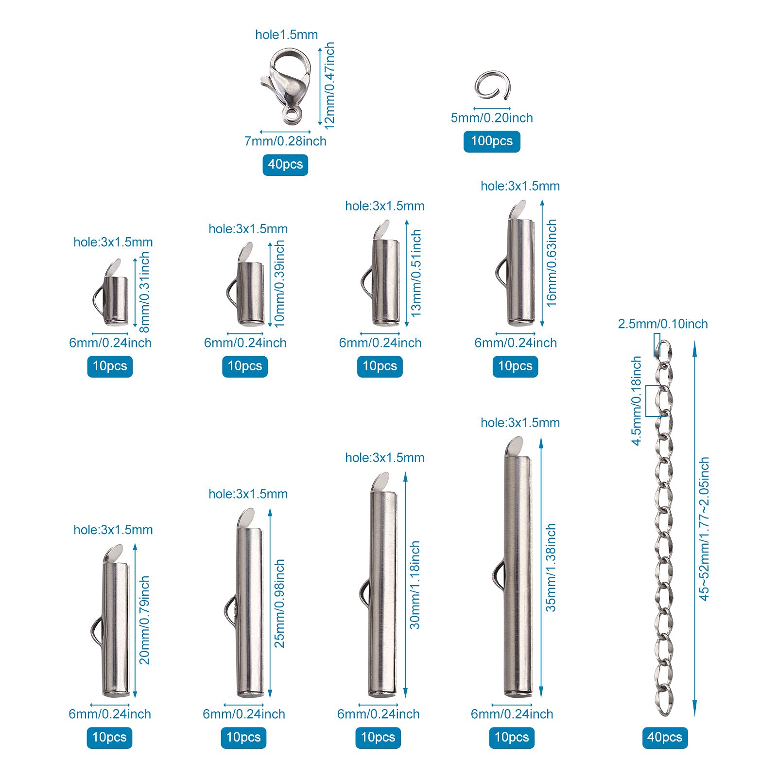- Original Jewelry Clasps – Beadthoven 260pcs 8sizes Stainless Steel Tube Slide On End Clasps with Twist Extender Chains Jump Rings Lobster Claw Clasps Crimp Cord Ends Findings for Jewelry Making 8/10/13/16/20/25/30/35MM by BB Beadthoven