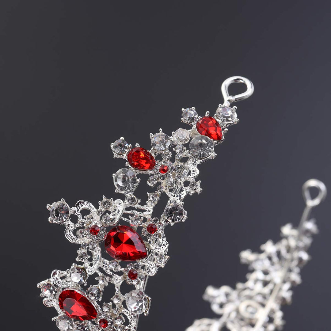 - Original Headbands – Baroque Queen Crowns Rhinestone Crystal Tiara and Crowns Headband Wedding Tiara for Women Prom Queen Crown (Silver Base, Red) by Beaupretty