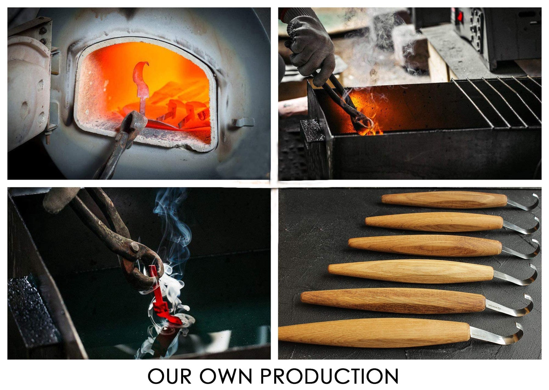 - Hook Knife Design for Comfort: its handle is made longer so you are able to work with one or both hands. Ergonomic design helps to carve longer without hand tiredness.