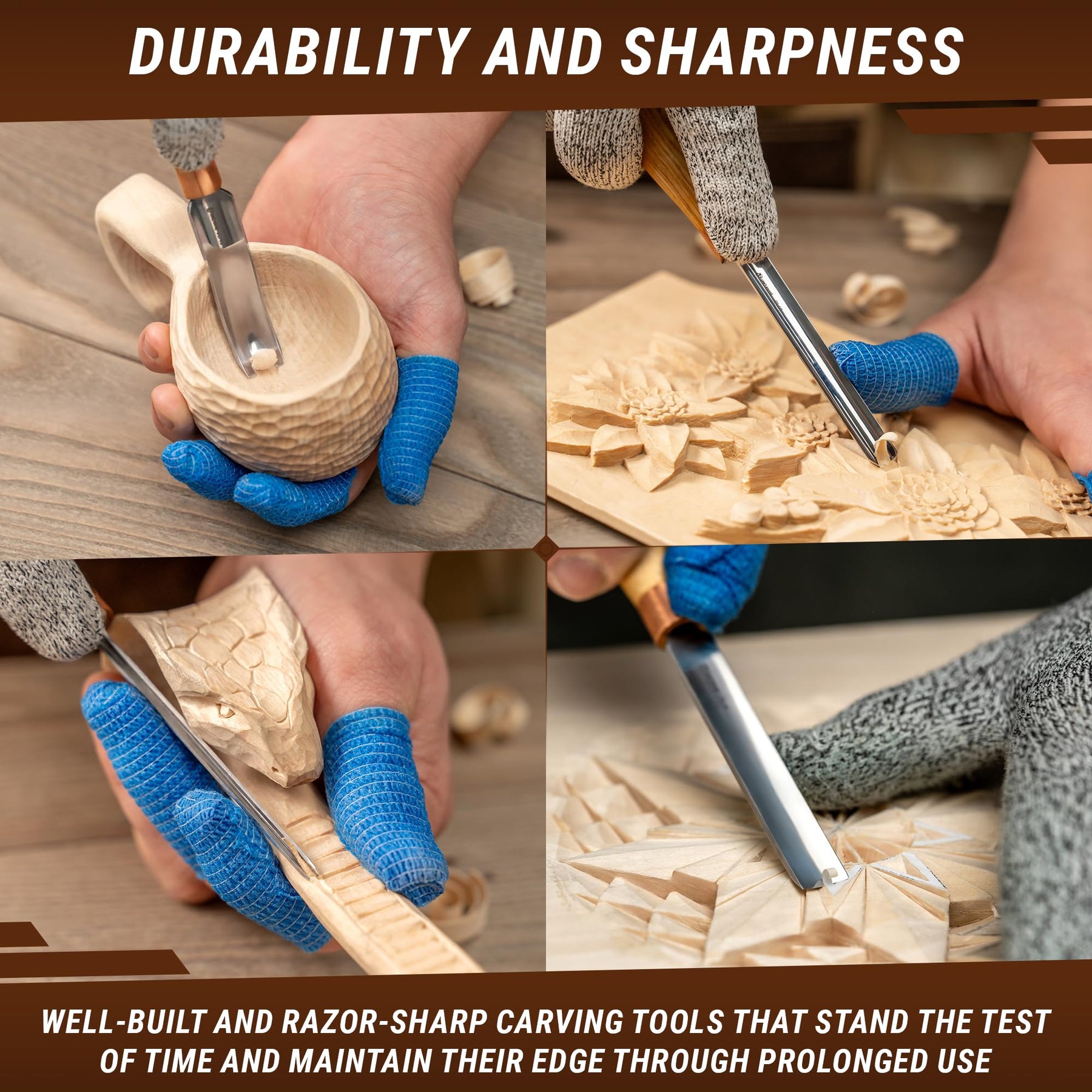 - Carving Kit Includes Stropping Set: you’ll get a double-sided leather honing strop needed for sharpening all woodworking tools with a smooth and rough side and a green polishing compound.