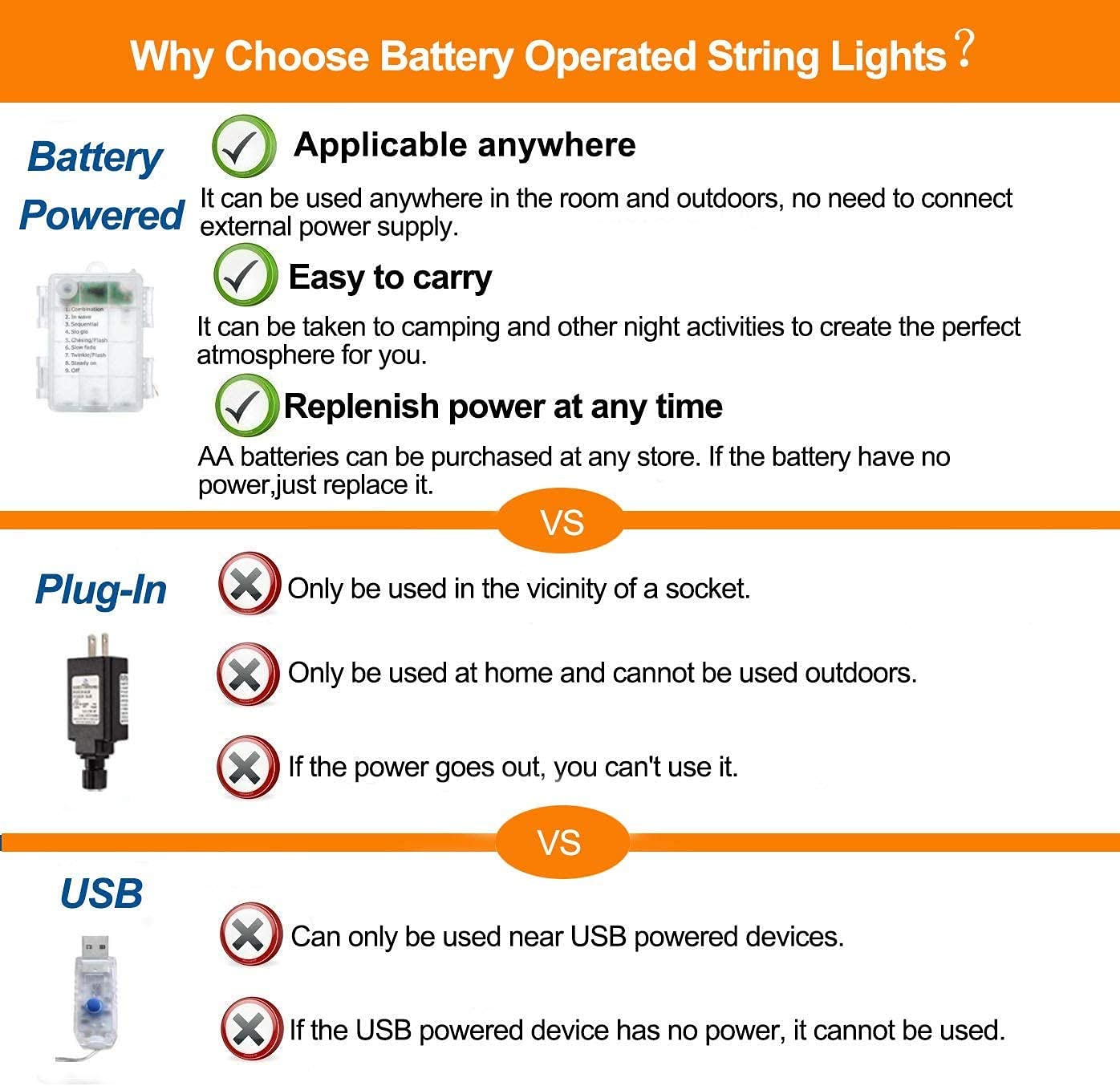 - Battery powered for Portability and Reliability:The rope light is powered by 3 AA batteries (excluded), so it is portable and can be mounted anywhere for ambience decoration and easy to replenish the power.