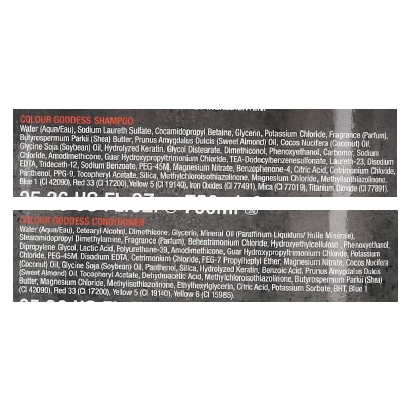 - Bed Head by TIGI Colour Goddess Shampoo and Conditioner Set contains a 25.36 fl oz shampoo and 25.36 fl oz conditioner