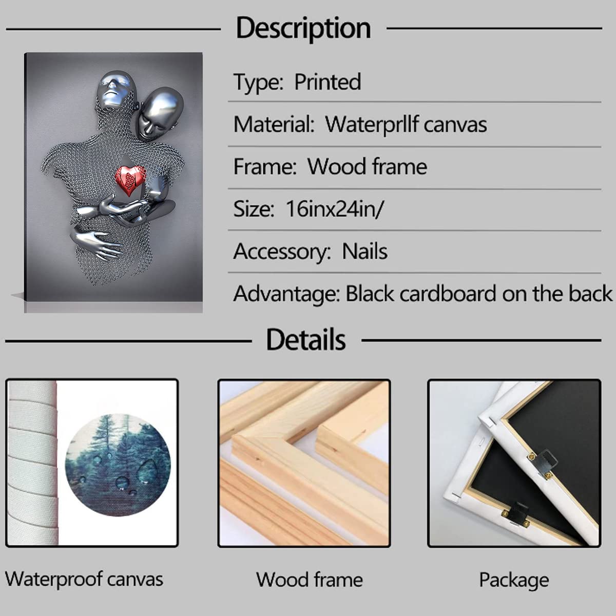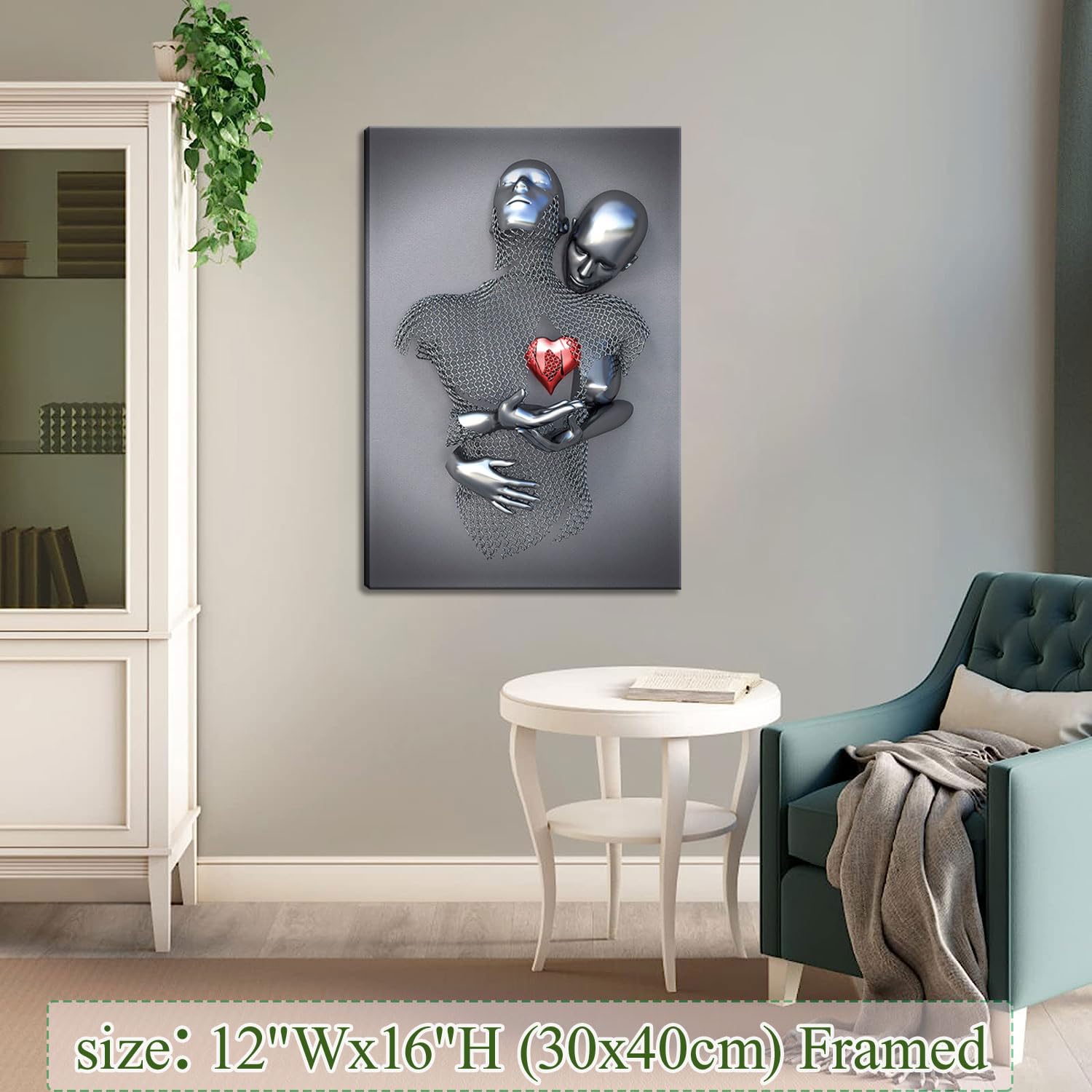 - Original Posters & Prints – Bedroom Wall Decor,Framed Romantic Couple Living Room Canvas wall art,Love Heart 3D Metal Sculpture Effect,Black and White Modern Abstract hug Lovers Painting Picture Poster Prints for Bathroom Hotel by AKOTAC