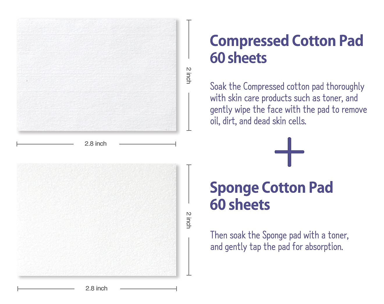 - Original Cotton Pads & Rounds – [120EA] Premium 2 in 1 Facial Cleansing Square Cotton Pads - Two Types of Face Wipes Cotton Pads for Toner, Makeup Remover, Compressed 60EA & Sponge 60EA, Made in Korea (1 Pack) by Beejong