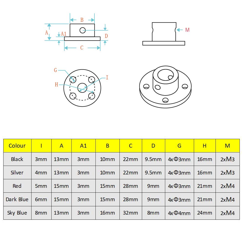 - Package Include2pcs 6mm flange shaft coupling, 1pcs M4 Hex Wrench, 8pcs fastening screws