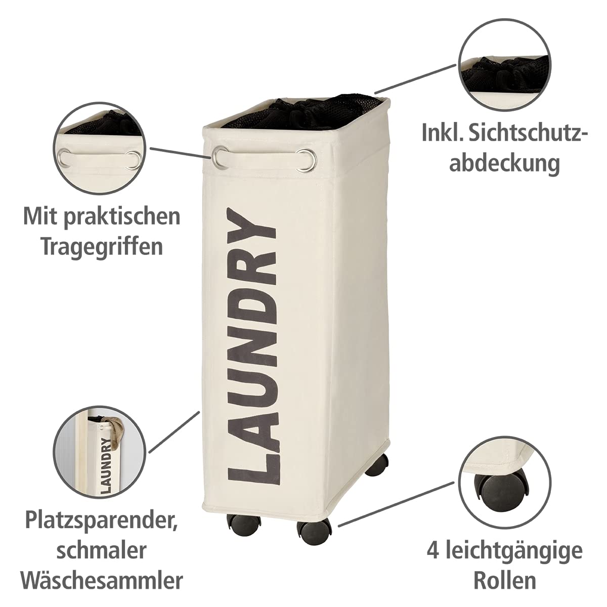 - Original Laundry Hampers – Beige Corno - Thin Laundry Hamper with Wheels - Small Space Laundry bin - Narrow Hamper, Laundry Collector, Laundry Basket with Wheels by WENKO