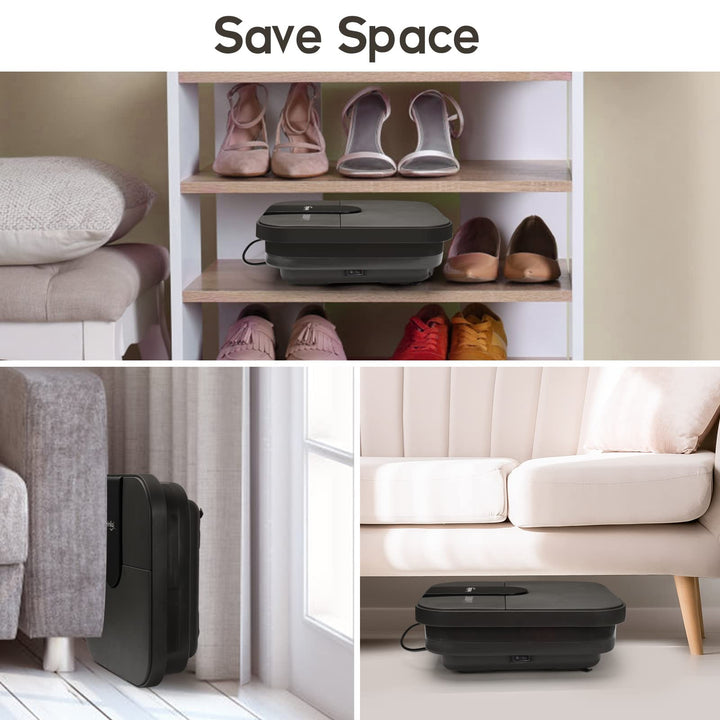 - [Collapsible Design & Space Saving]:Pedicure foot bath could be folded to only 4.53 inches in height. Feet soaking tub can be stored in any narrow corner.This foot spa has a dust-proof cover to keep the inside clean when not used.Note: This collapsible foot bath is suitable for feet up to size 10 !!!