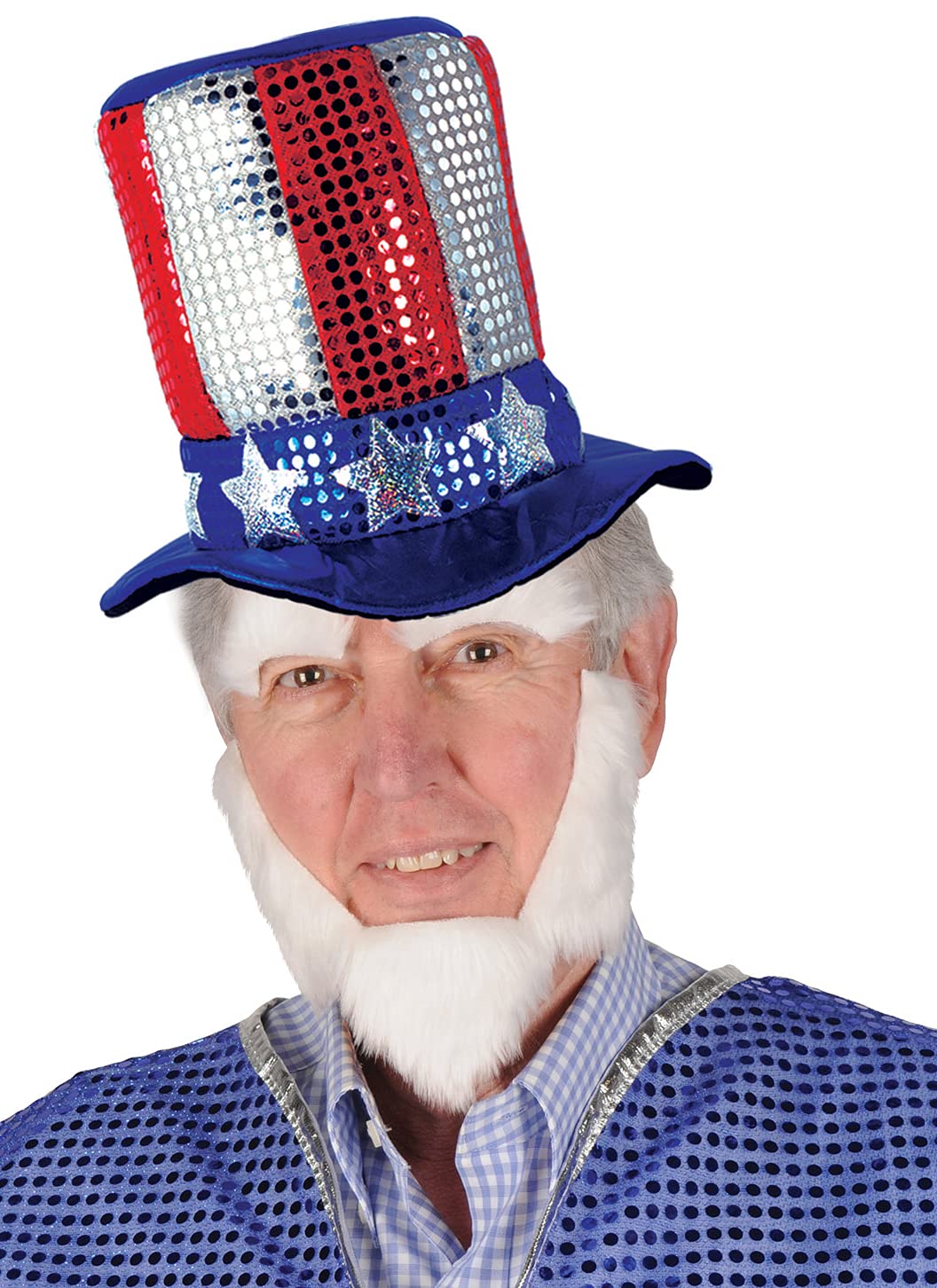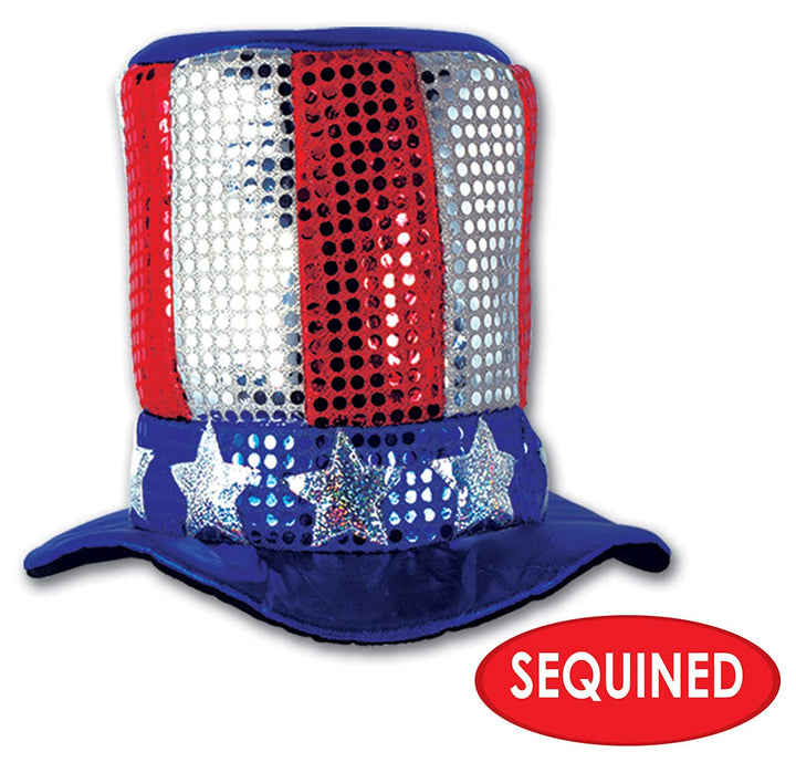 - PATRIOTIC PARTY ACCESSORY: Featuring the iconic red, white, and blue color scheme with metallic accents, this Uncle Sam hat is a true embodiment of American pride. The sequin print with star-spangled design captures the essence of the USA, making it a must-have for any patriotic event.