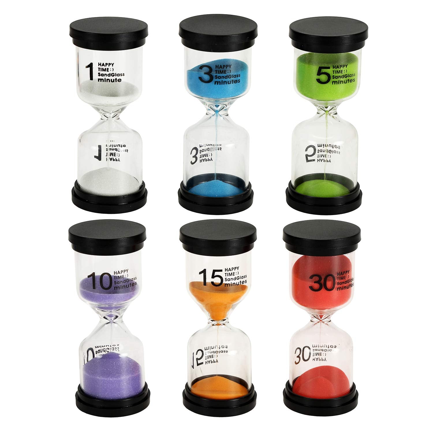 - Original Timers – 6 Pack Sand Timer, Colorful Hourglass Timer 1 min/3 mins/5 mins/10 mins/15 mins/30 mins Sandglass Timer for Kids Games Classroom Kitchen Home by Bekith