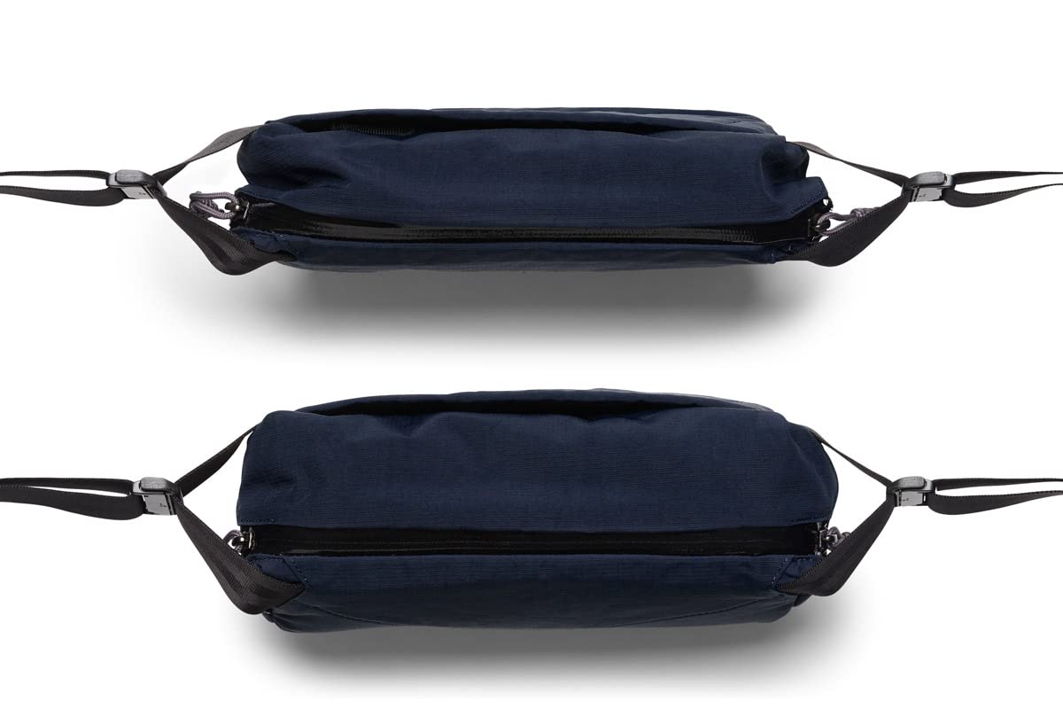 - This sling has an expansion gusset that lets it grow to fit a water bottle and windbreaker, and then self compress when the load is lighter. There’s plenty of organization, including a quick-access front pocket with key clip, internal soft-lined pouch, slip pockets, pop pockets and mesh zip pockets.