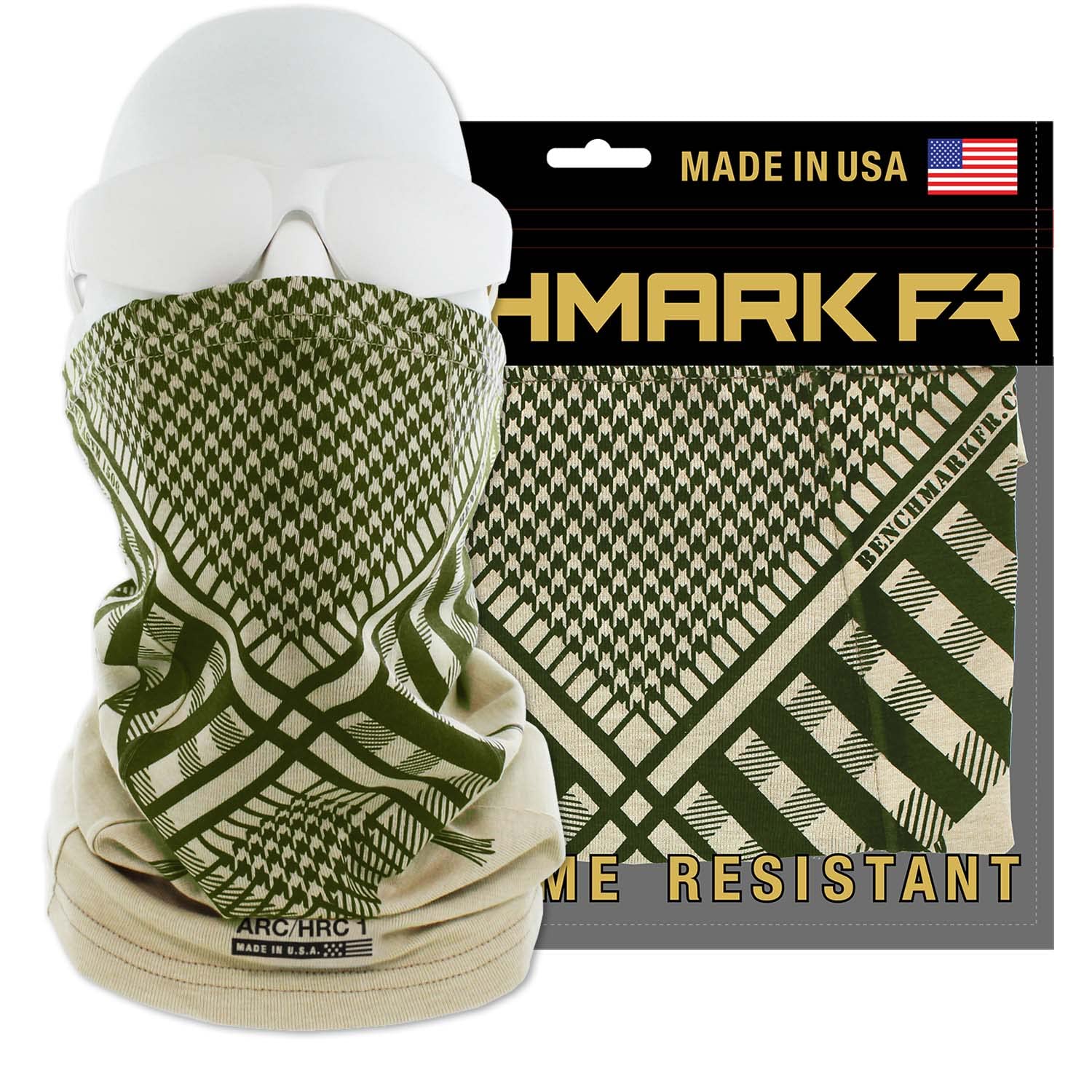 - Original Personal Protective Equipment – Flame Resistant Face Mask Neck Gaiter - CAT1 (Army Green American Shemagh - Beige) by BENCHMARK FR