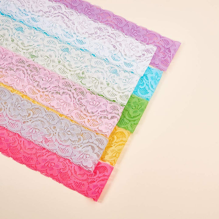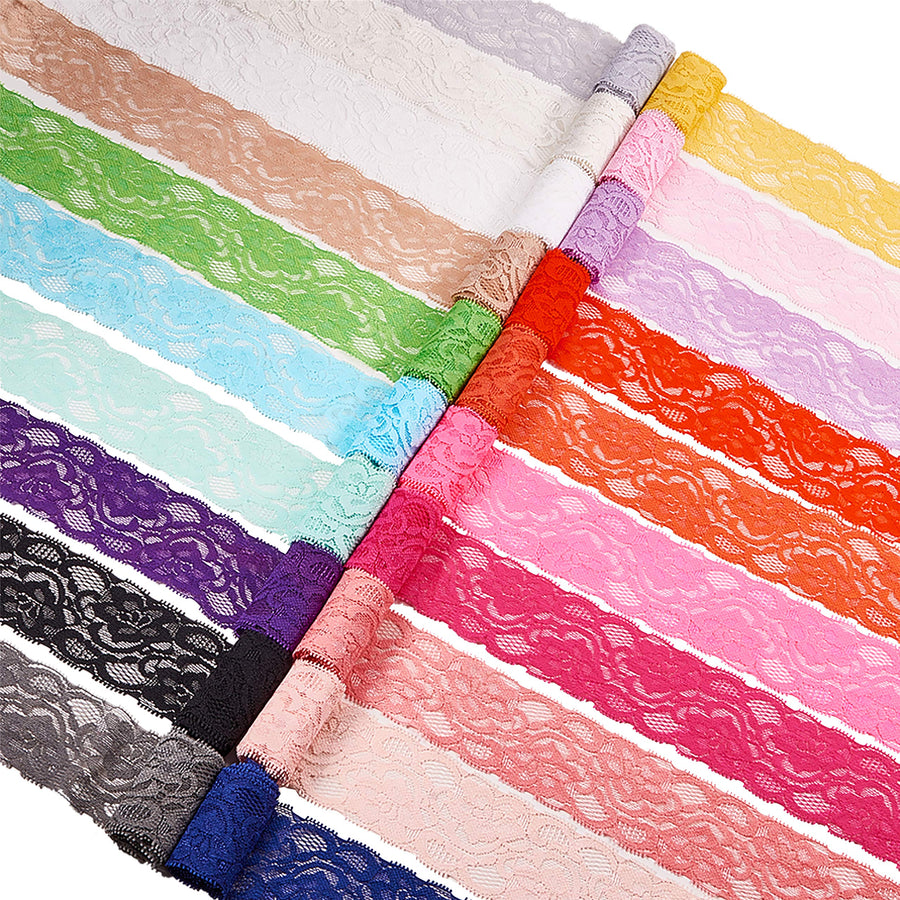 - Packge Includes: 20 Rolls (1 Yard/Roll) Mixed Color Lace Fabric Stretch Elastic, 20 Yards in Total, A WIDE VARIETY OF COLORS AT THE MOST ECONOMICAL PRICE