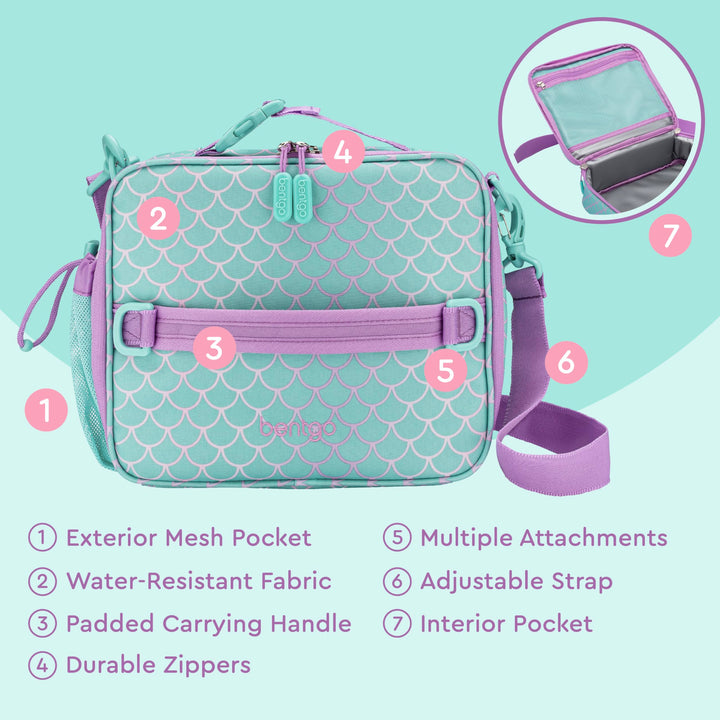 - Original Lunch Bags – Kids Lunch Bag - Durable, Double-Insulated Lunch Bag for Kids 3+; Holds Lunch Box, Water Bottle, & Snacks; Easy-Clean Water-Resistant Fabric & Multiple Zippered Pockets (Mermaid) by Bentgo