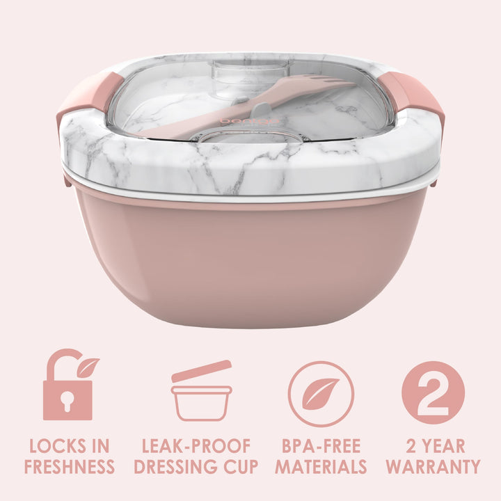 - Original Bento Boxes – All-in-One Salad Container - Large Salad Bowl, Bento Box Tray, Leak-Proof Sauce Container, Airtight Lid, & Fork for Healthy Adult Lunches; BPA-Free & Dishwasher/Microwave Safe (Blush Marble) by Bentgo