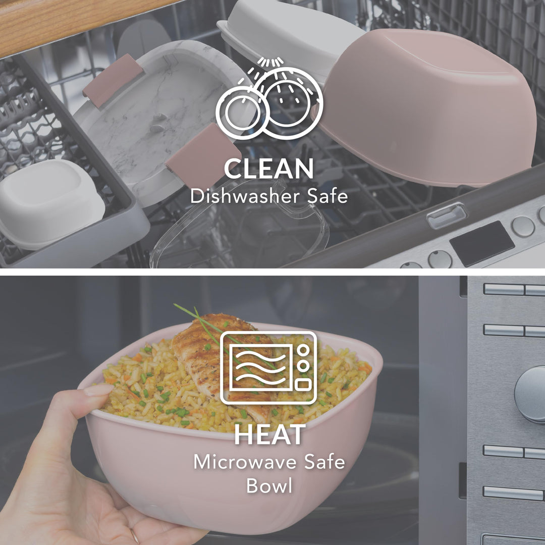 - Dishwasher & Microwave Safe: Enjoy easy clean up and heat up every time you use Bentgo Salad. All parts are easy to clean in the top shelf of your dishwasher, while the bowl can go into the microwave, so you can warm chicken, whole grain pasta, and other meals. Plus, everything is made of BPA-free materials that are safe, durable, and reusable.