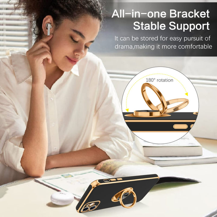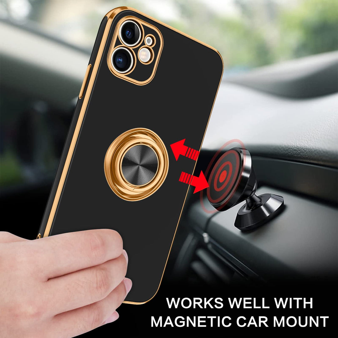 - Original Basic Cases – for iPhone 11 Case with 360° Ring Holder, Shockproof Slim Kickstand Magnetic Support Car Mount Women Men Non-Slip Protective Phone Case for iPhone 11 6.1, Black/Gold by BENTOBEN