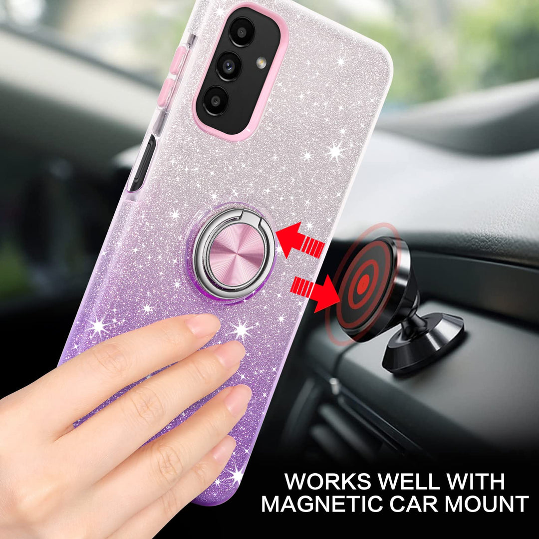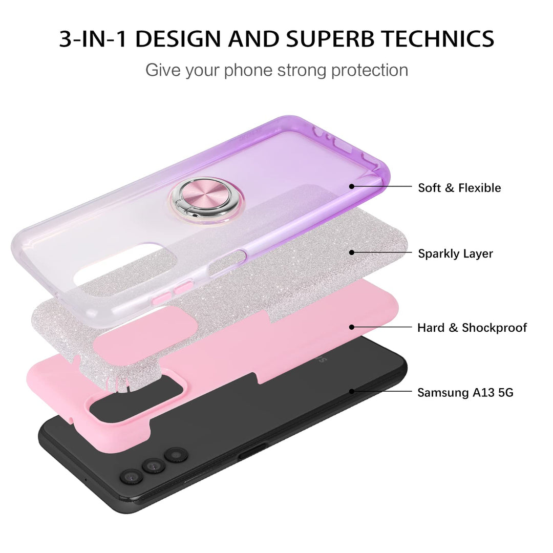 - Original – Galaxy A13 5G Case, Glitter Sparkly 360° Ring Holder Kickstand Magnetic Car Mount Dual Layer Shockproof Protective Girls Women Case Cover for Samsung Galaxy A13, Purple by BENTOBEN