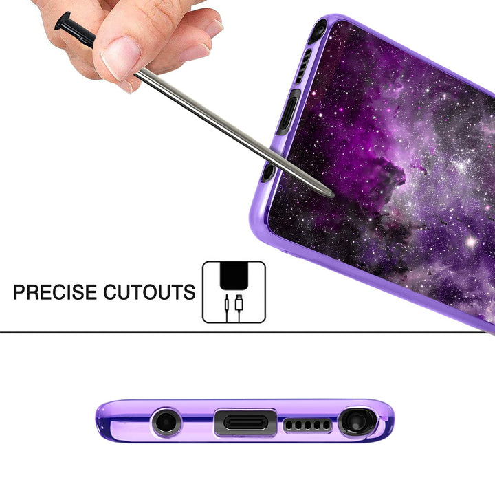 - Awesome Cute Purple Nebula Galaxy Pattern: the cool beautiful nebula space pattern in the back hard cover makes your phone look much more eye-catching and attractive. The case will glow in the dark after absorbing enough light under the sun or other light sources so that you can easily find your phone at night. The longer the case absorbs light, the brighter and longer the glowing will last. Convenient and practical for your daily use.