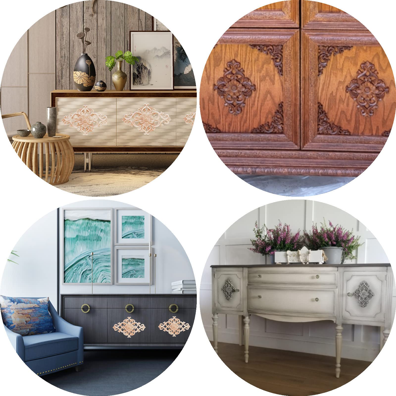 - The wooden applique combines the Chinese and Western culture, it fully reflects the beauty of combined cultures, carved clear.Can be used to decorate the walls and the roof of the first door furniture by attaching to cabinets, windows, mirrors, also can be used as decorative doors