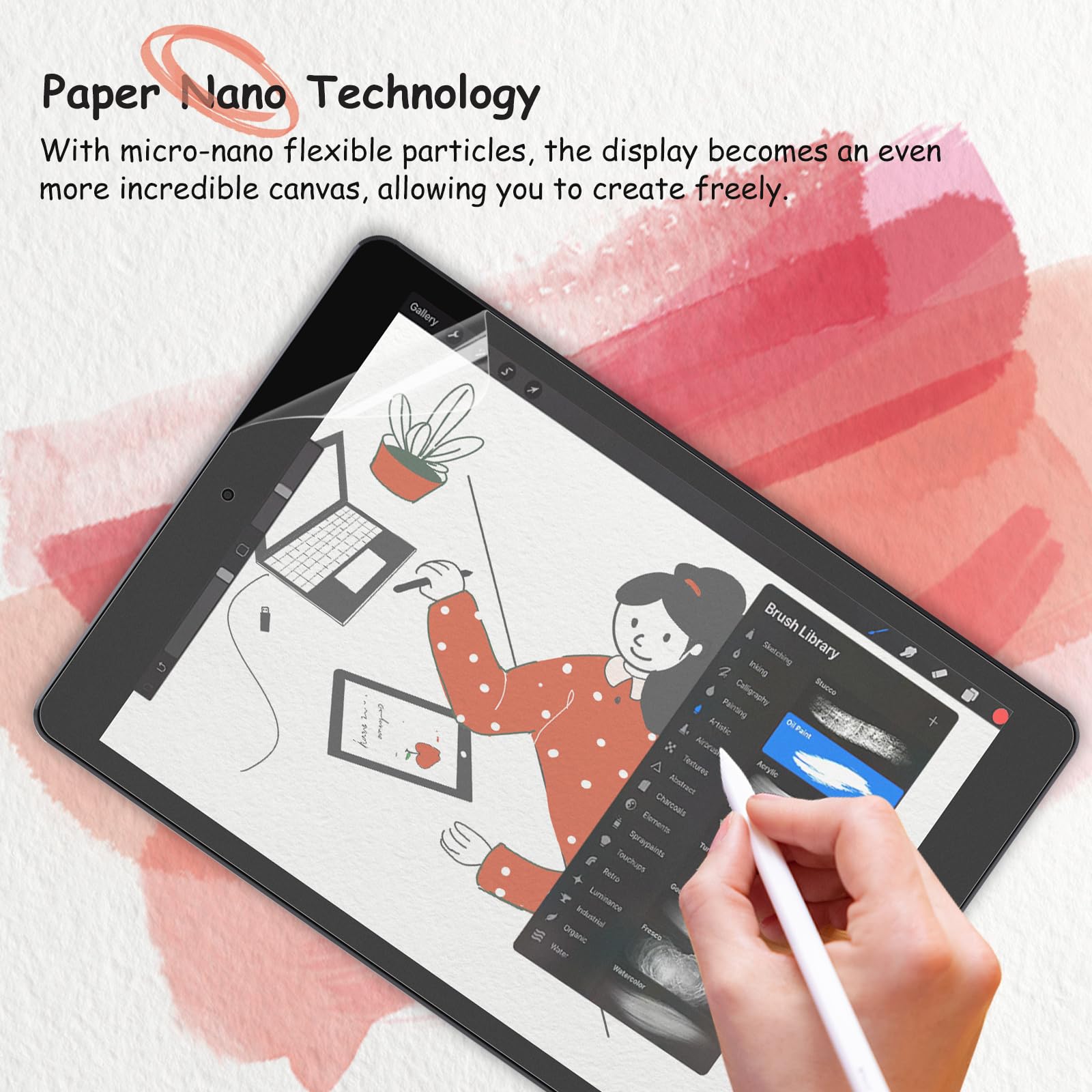 - Paperfeel: Using high-quality materials imported from Japan, the special texture on the surface will make you feel like you are touching on real paper. Our screen protector will give you the natural feel and resistance of the paper without slipping for your convenience. At the same time, it will not cause dizziness and eye discomfort due to long-term use