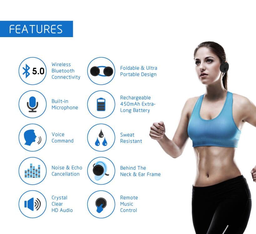 - Comfortable Fit with Sport Style: Behind-the-head design for luxury comfort; foldable arms for protective storage and easy portability