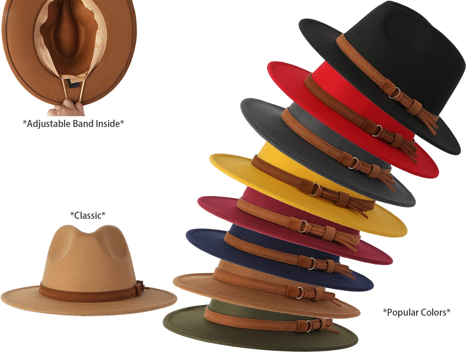 - Original Fedoras – Classic Wide Brim Women Men Fedora Hat with Belt Buckle Felt Panama Hat (Black) by Besoogii