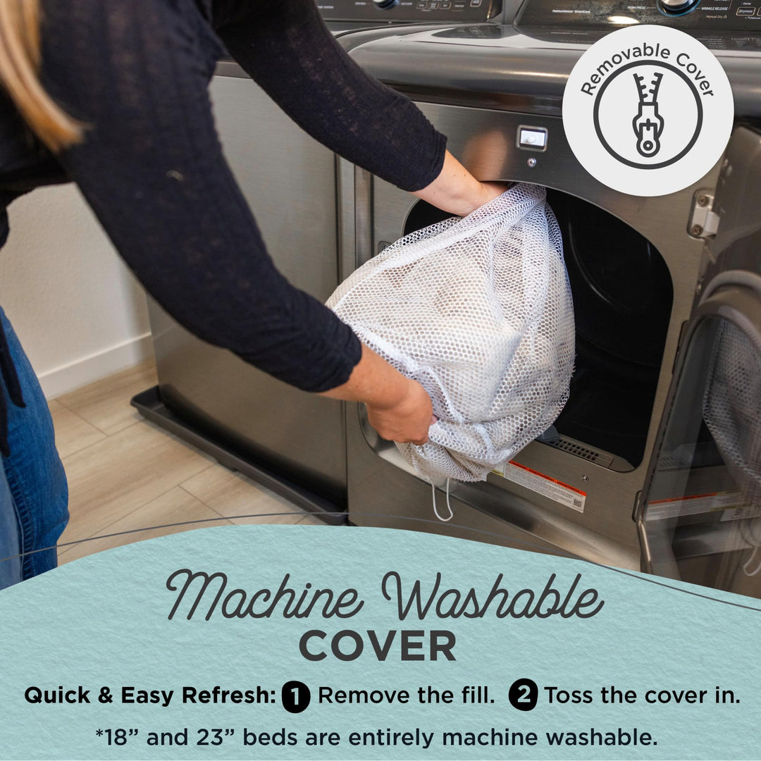 - Machine washable – the 18 and 23 beds are entirely machine washable; 30, 36, 45, and 54 beds feature a removable cover that is machine washable; please see our pro tips and special care instructions for more details