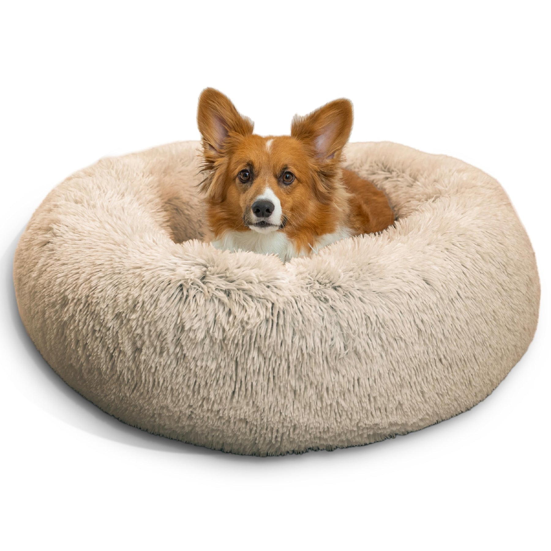- Original Beds – The Original Calming Donut Dog and Cat Bed in Shag Fur, Taupe, Medium, 30x30 by Best Friends by Sheri
