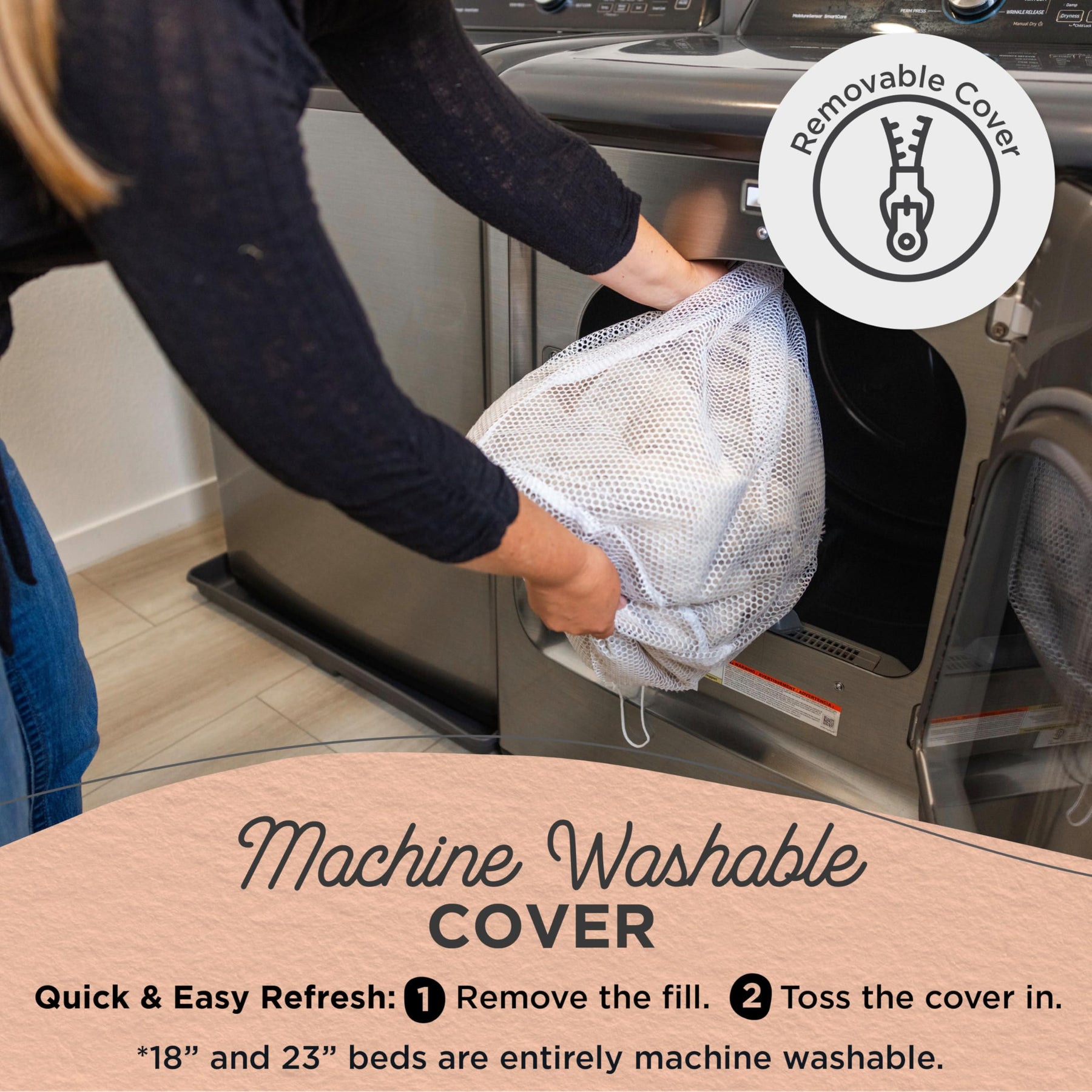 - Machine washable – the 18 and 23 beds are entirely machine washable; 30, 36, 45, and 54 beds feature a removable cover that is machine washable; please see our pro tips and special care instructions for more details