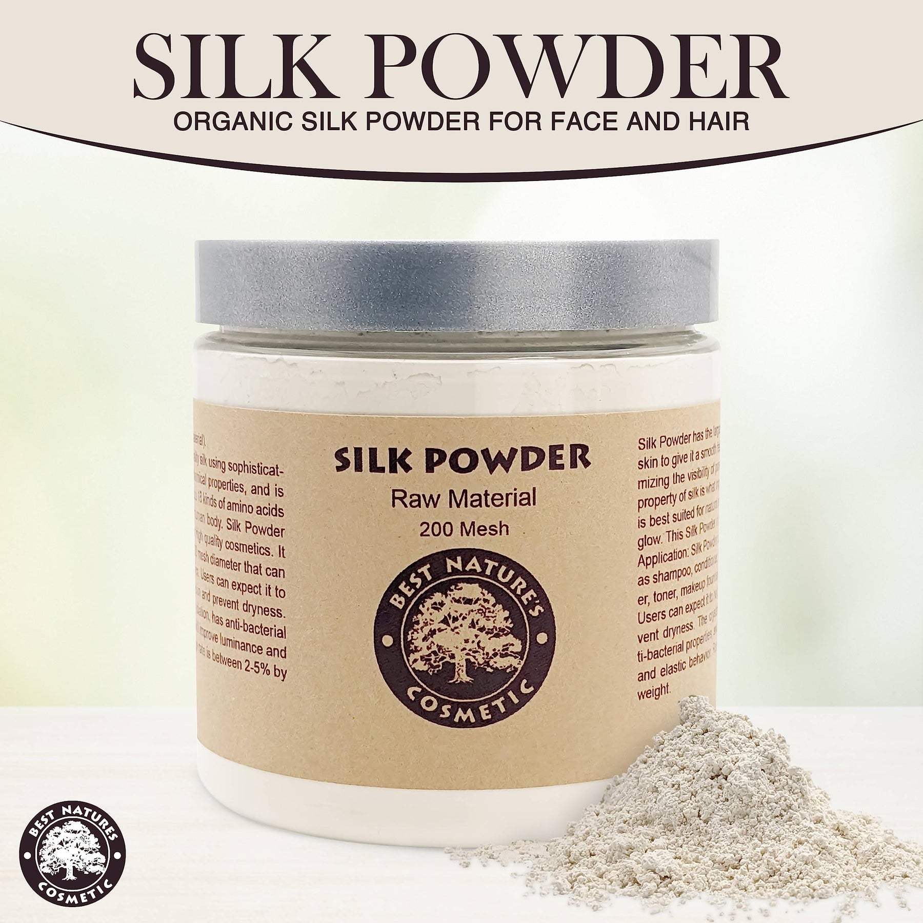 - Original Shampoos – Best Nature's Silk Powder (8 fl oz, 240ml) - 100% RAW, Clean, Cosmetic Grade - Pure and Organic Silk powder for Face and Hair - Suitable for Use in Soap Making, Shampoo, Makeup, Hair Treatments … by Best Nature's Cosmetics