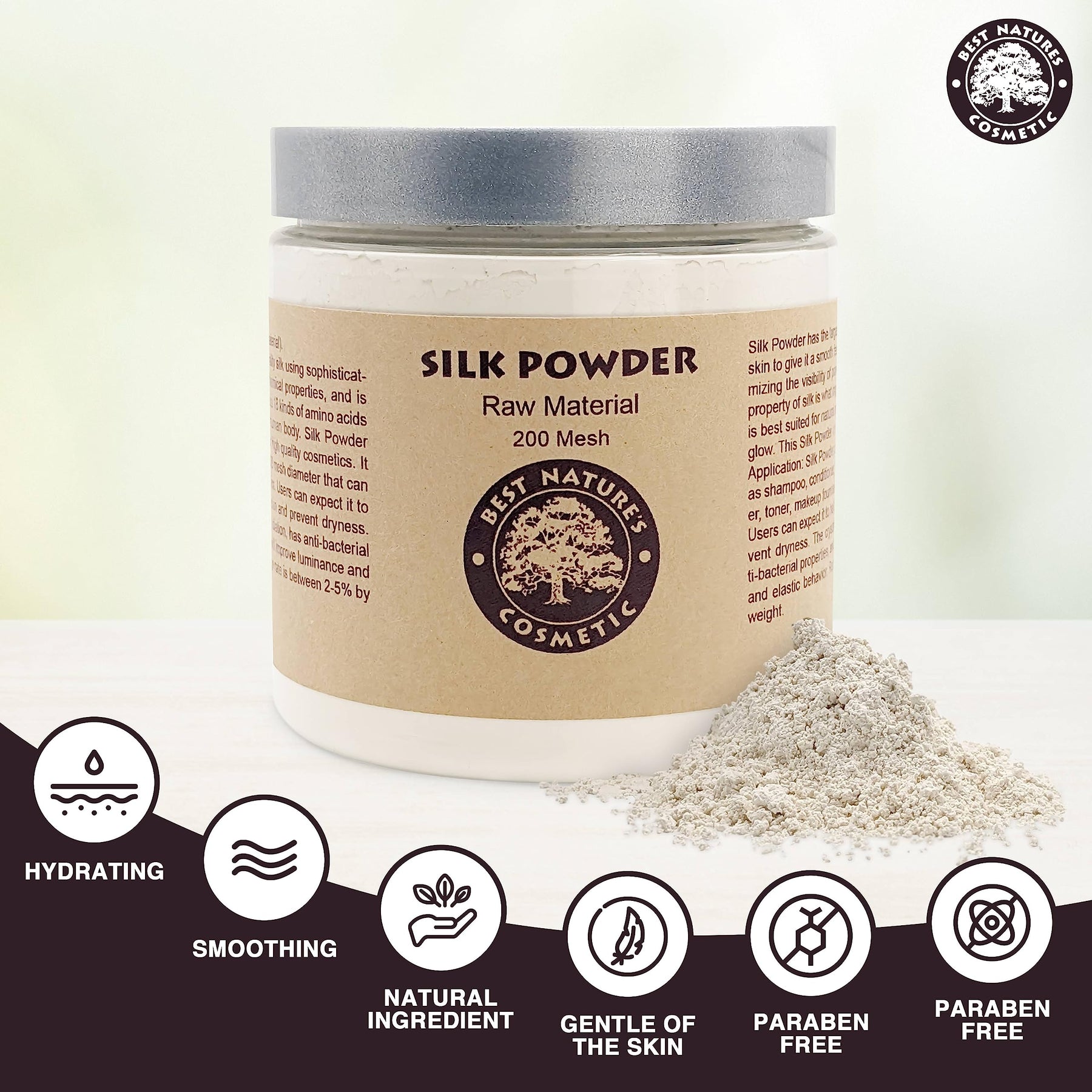 It does not contain paraben, sulfate or other harsh chemicals, making it perfect for use in everyday cosmetics. Give your skin a natural makeover with this non-comedogenic, hypoallergenic silk powder.