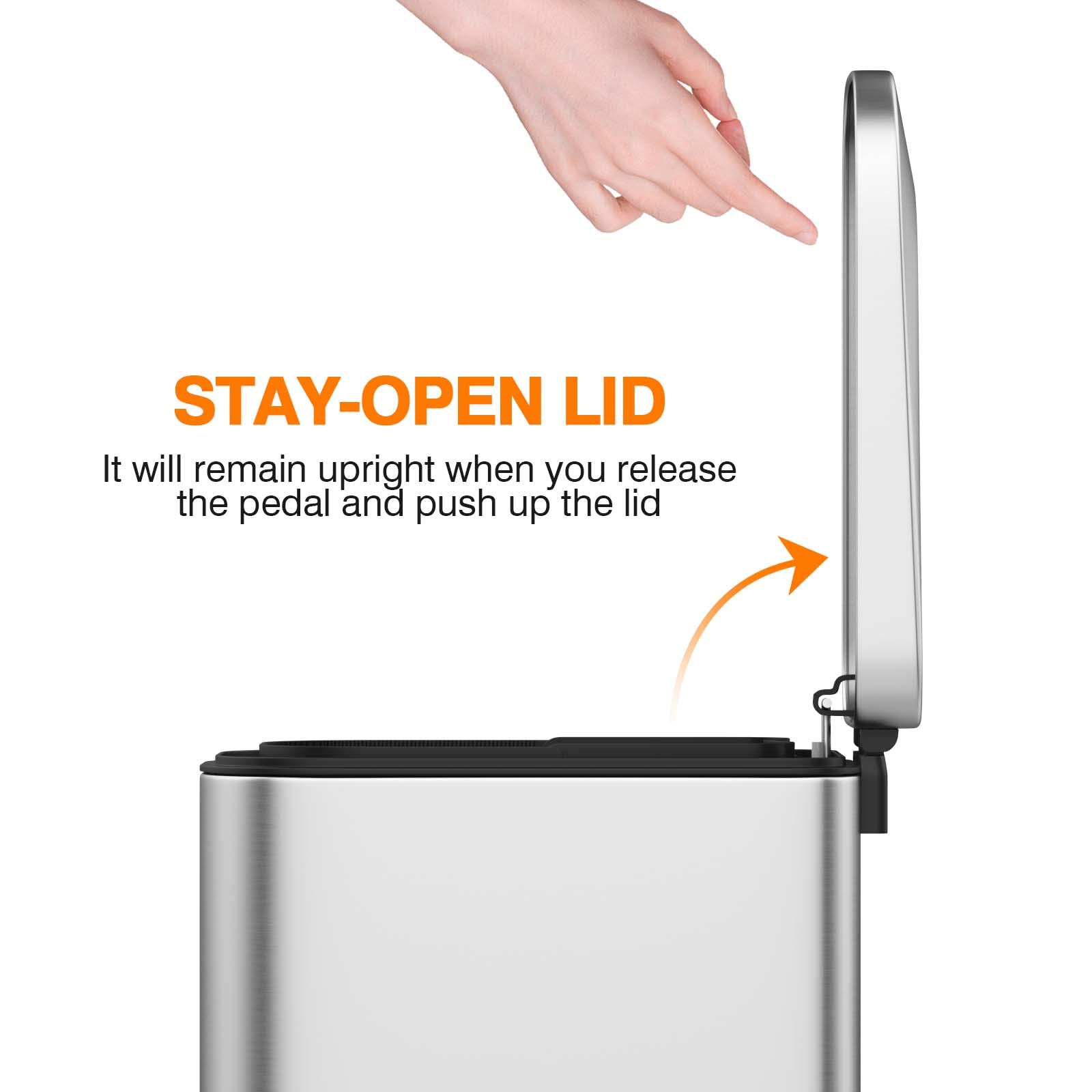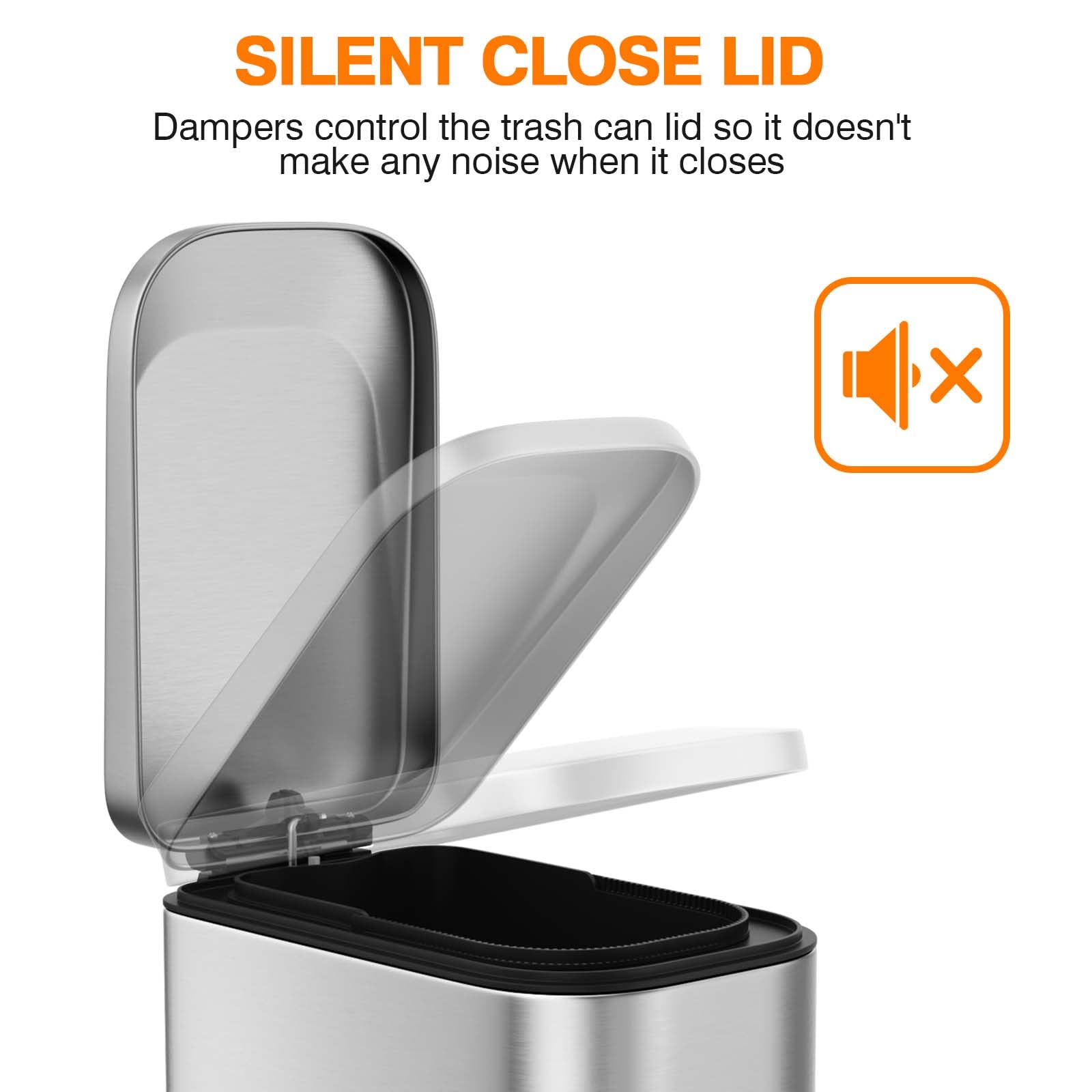 - Original Kitchen Trash Cans – 15 Liter/4 Gallon Trash Can with Soft Close Lid,Stainless Steel Trash Can with Removable Wastebasket, Step Trash Can for Bathroom,Kitchen,Office (Silver) by BETHEBEST
