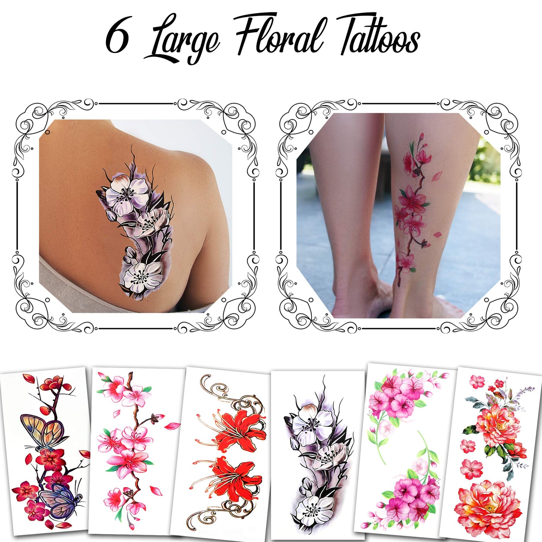 - Original Categories – 9 Large Temporary Tattoos Assorted Floral Designs - For Women and Girls for Arms Legs Shoulder or Back by BETTERLINE