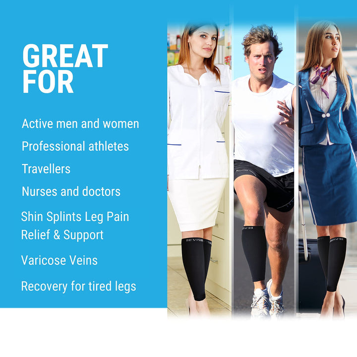 - Original Calf & Shin Supports – Calf Compression Sleeve - Toeless Leg Compression Socks for Men & Women - Calf Sleeves For Shin Splints, Calf Pain Relief, Running, Cycling, Travel, Varicose Veins, Maternity - 1 Pair by BeVisible Sports