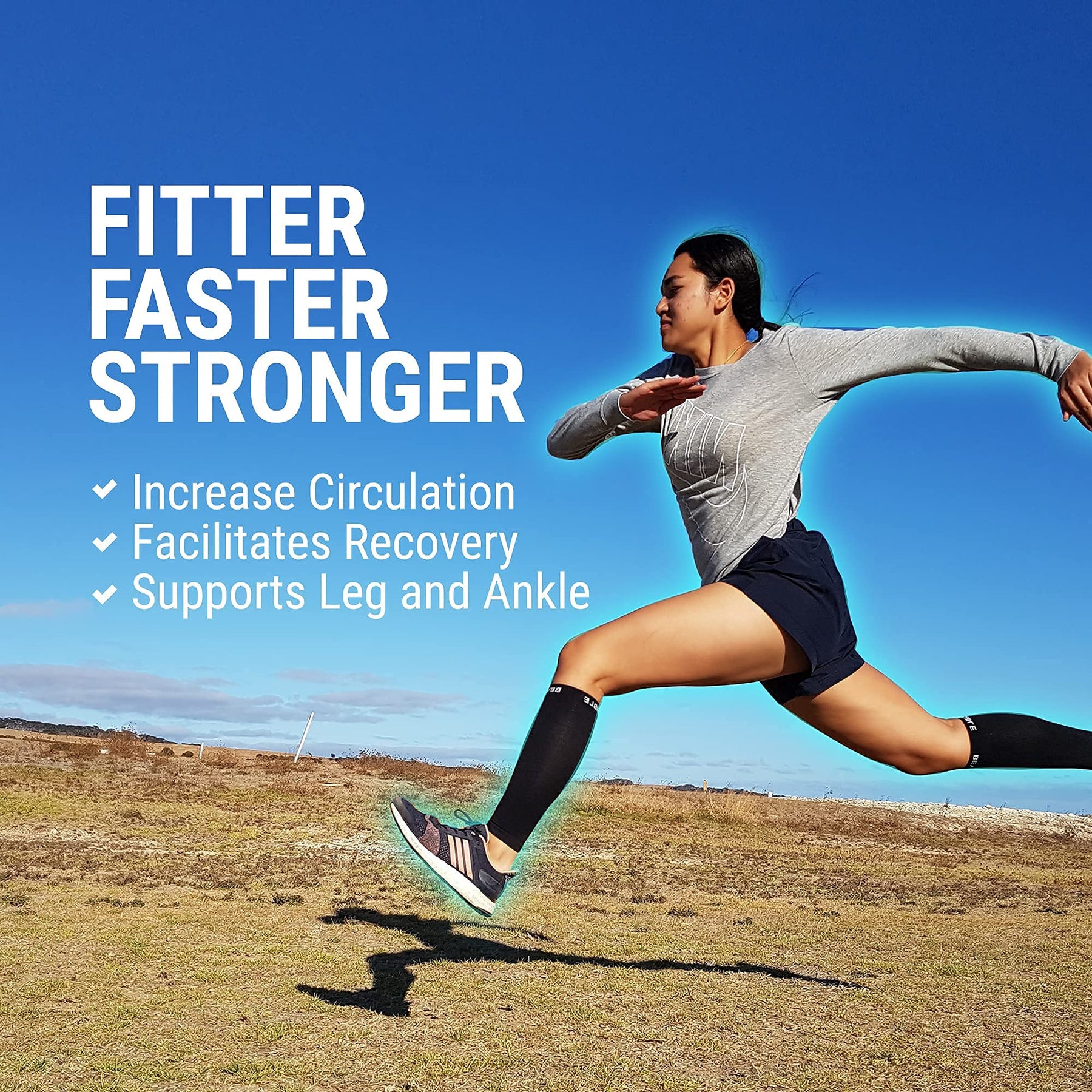 - POWER & ENERGY BOOST : Notice the difference when you put on our calf compression sleeves. They boost circulation in the legs, help prevent micro muscle tears, support & refresh your legs. This results in a feeling of increased power and energy that enables you to train harder, longer and become fitter, faster and stronger.