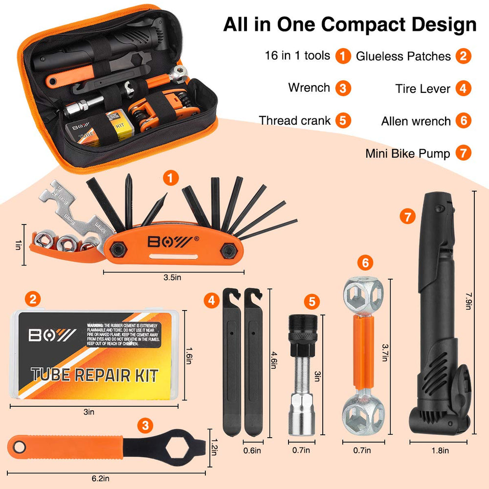 - Bike Repair Kit With Pump And Bag, Bicycle Tube Repair Patch Tool Kit, All Accessory Better Than Other Similar Products—compared To The Repair Function Or The Quality Of Accessories.