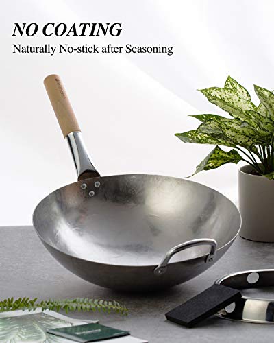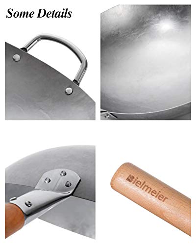 - Original Woks & Stir-Fry Pans – 14 Inch Carbon Steel Wok with Wok Ring,Woks and Stir Fry Pans with Sponge, Round Bottom Wok pan for Home and Professional Cooking… by BIELMEIER