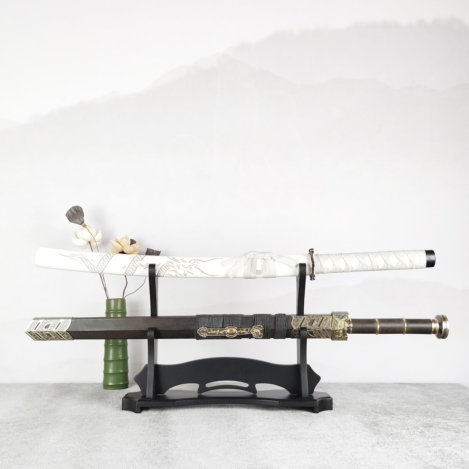 - The katana display stand is designed to provide a visually appealing and balanced presentation, enhancing the aesthetic appeal of your collection. With its sturdy construction and attention to detail, the sword stand display is a great addition to any sword enthusiast's collection.