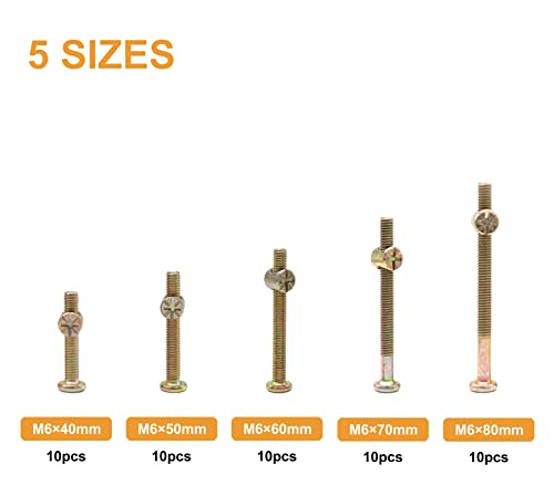 - Original Cribs – Baby Bed Crib Screws Hardware Replacement Parts, 50pcs M6 x 40mm/ 50mm/ 60mm/ 70mm/ 80mm Hex Socket Cap Bolts Barrel Nuts Set for Crib Cot Chairs Bed Furniture,Zinc Plated by binifiMux
