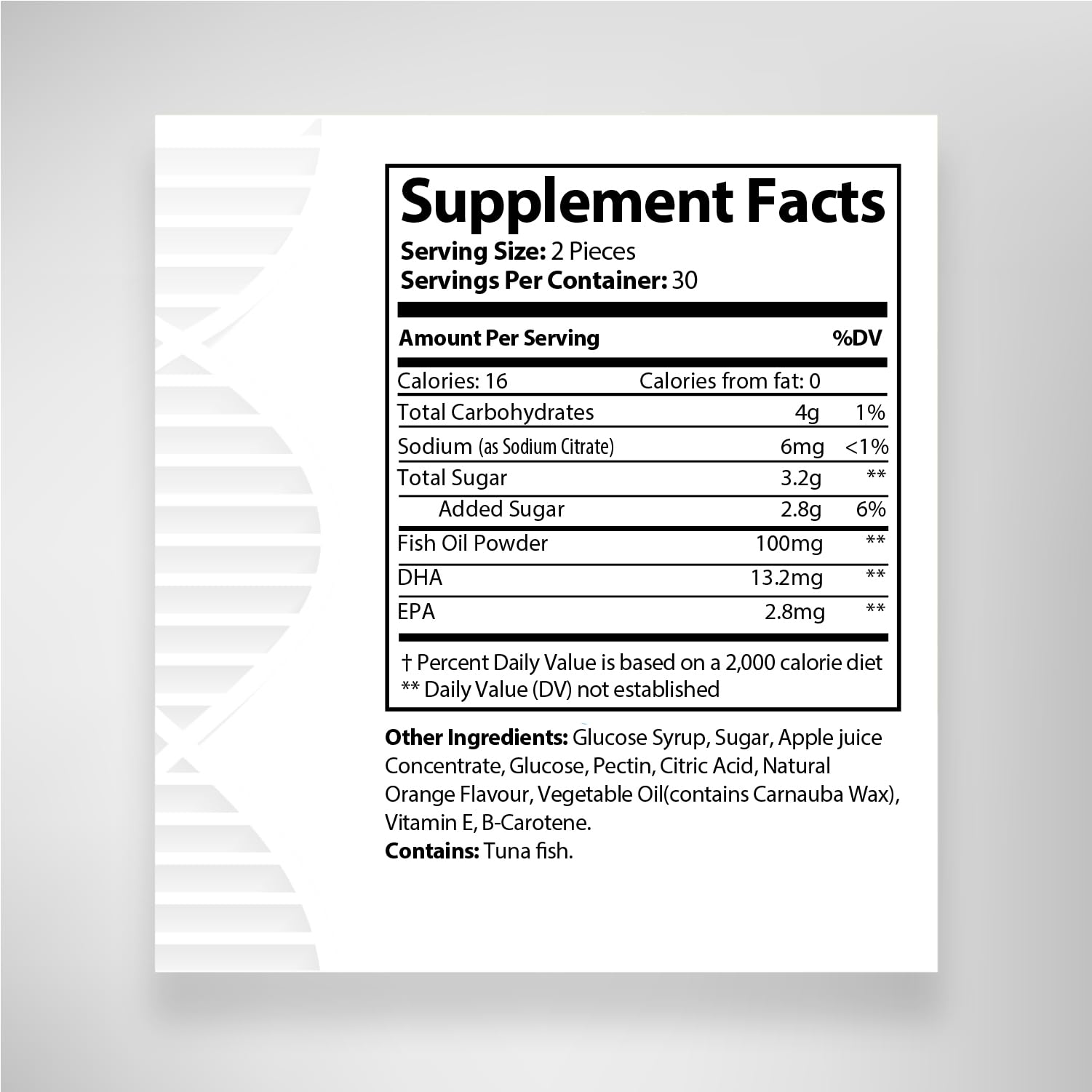 - OMEGA 3 FISH OIL Gummies with EPA and DHA naturally together in fish oil and work together in the body, without the fishy aftertaste but with a delicious of orange & apple Flavor