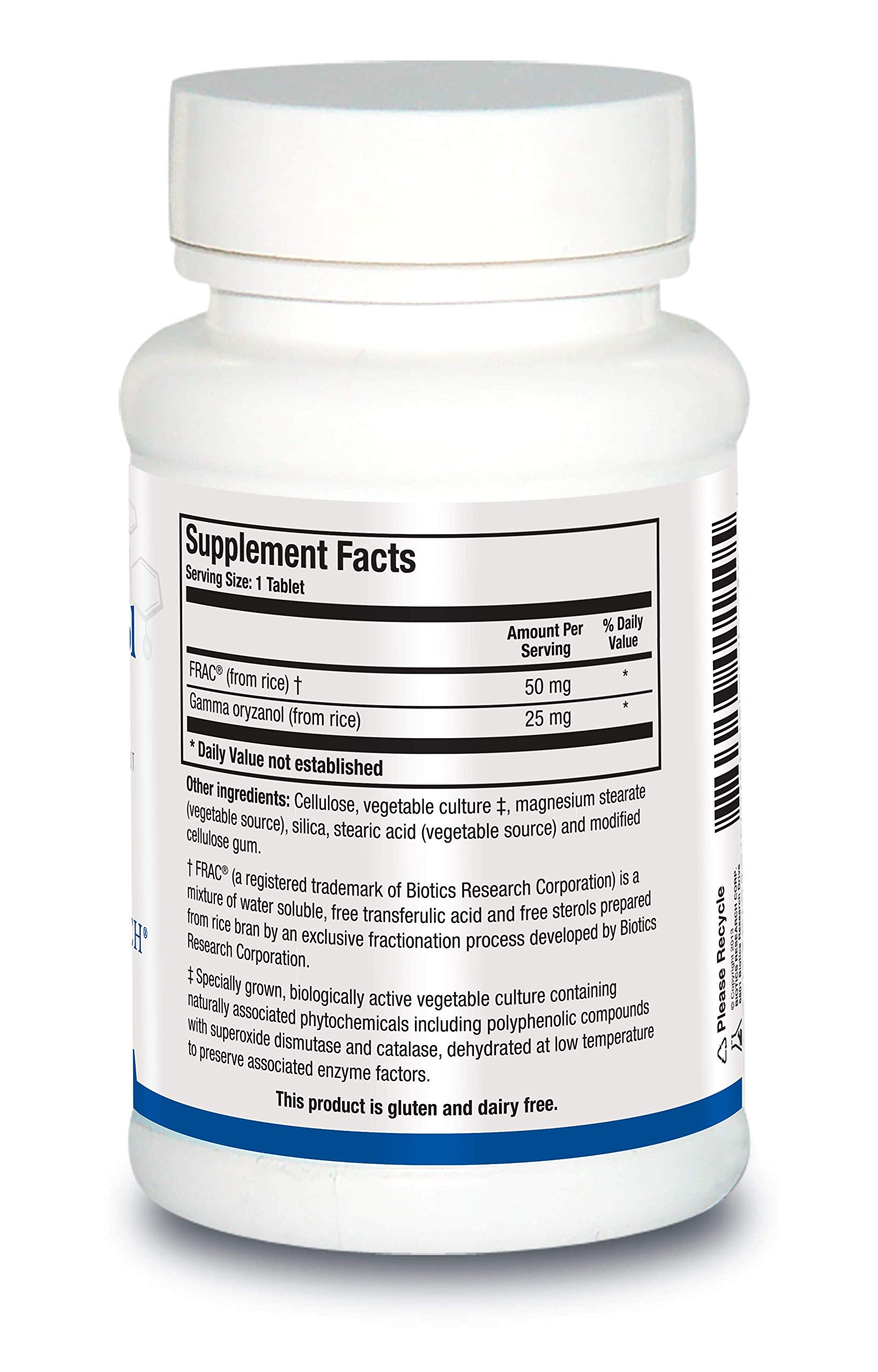 | ingredients | FRAC® (from rice) †, Gamma oryzanol (from rice), Cellulose, vegetable culture †, magnesium stearate (vegetable source), silica, stearic acid (vegetable source), and modified cellulose gum. |