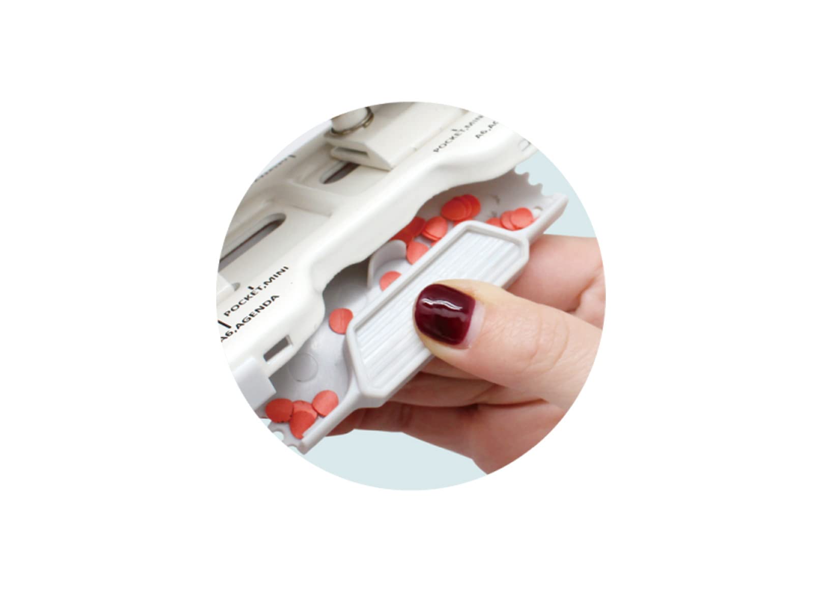 - Adjustable 6 hole punch, offers an adjustable hole design that create pocket minis, agenda pages, and planner pages with ease.